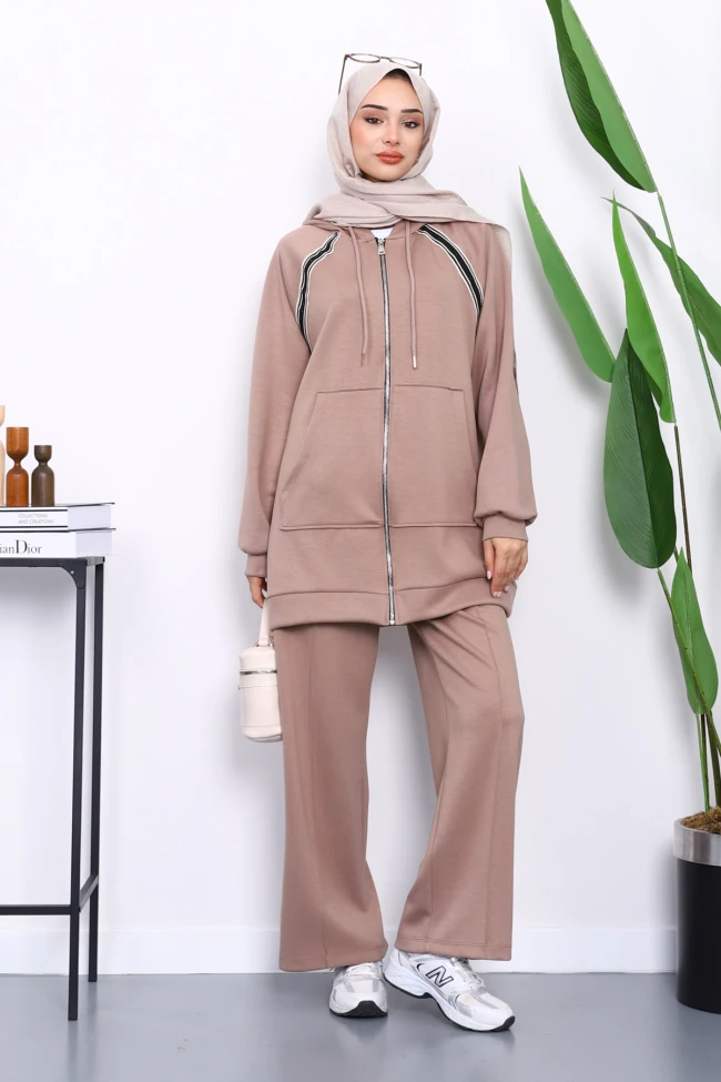 * Ürün Detay : Ürünümüz Modal Kumaştan Üretilmiştir. Tunik ile Pantolon ikili takım şeklindedir. Tunik ön kısmı fermuarlı ve kapüşonlu olarak tasarlanmıştır. Pantolon bel kısmı lastiklidir.