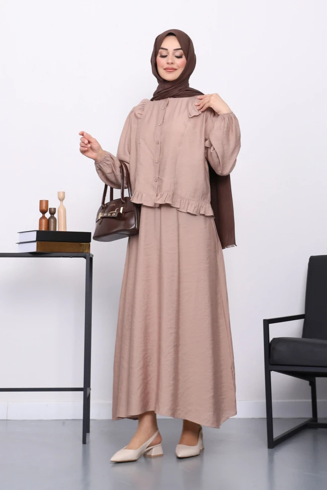 * Ürün Detay : Yeni sezona uygun Modal Keten kumaştan üretilmiştir. Gömlek ile Etek ikili takım şeklindedir. Gömlek ön kısmı düğmelidir. Etek bel kısmı lastiklidir.