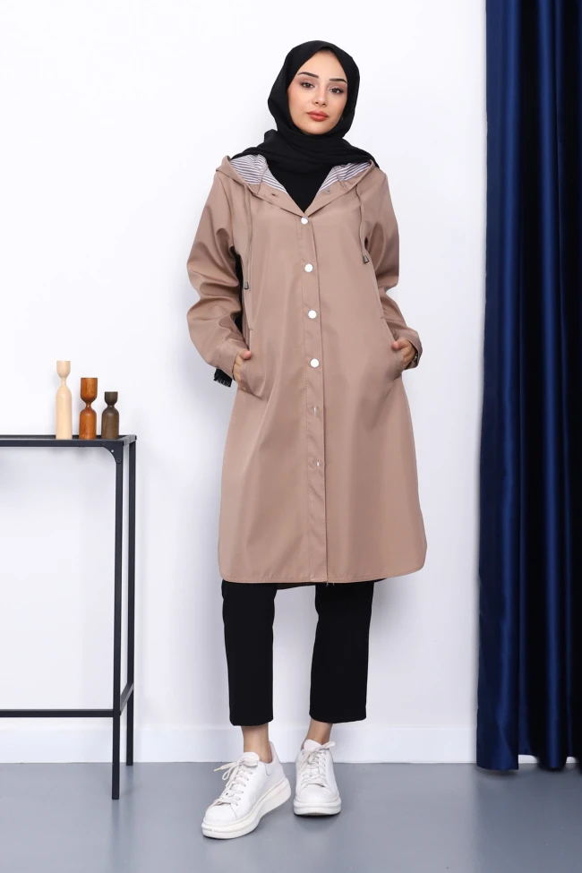 Siyah Kapşonlu Düğme Detaylı Trençkot Haki Kapşonlu Düğme Detaylı Trençkot Lacivert Kapşonlu Düğme Detaylı Trençkot Camel Kapşonlu Düğme Detaylı Trençkot