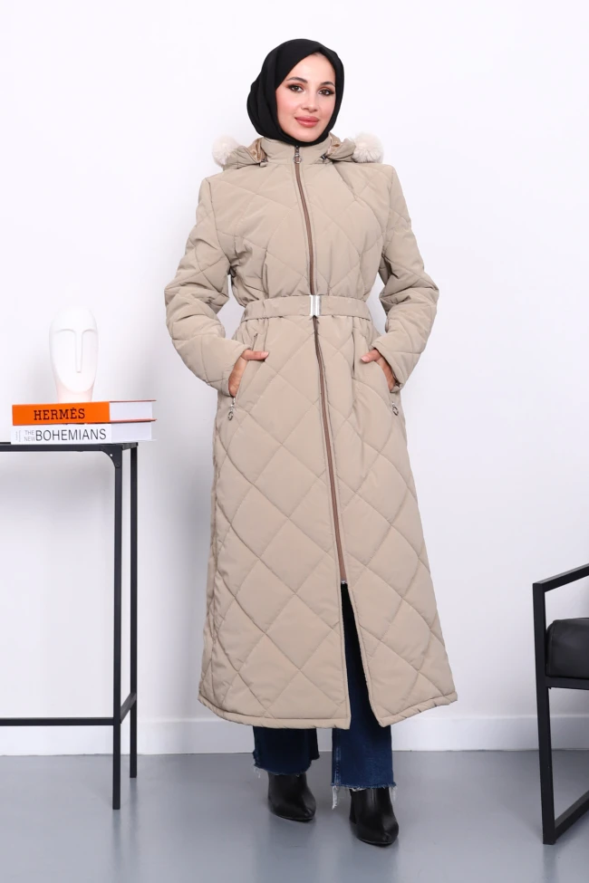 Siyah Kapüşonlu Kapitone Uzun Şişme Mont Haki Kapüşonlu Kapitone Uzun Şişme Mont
