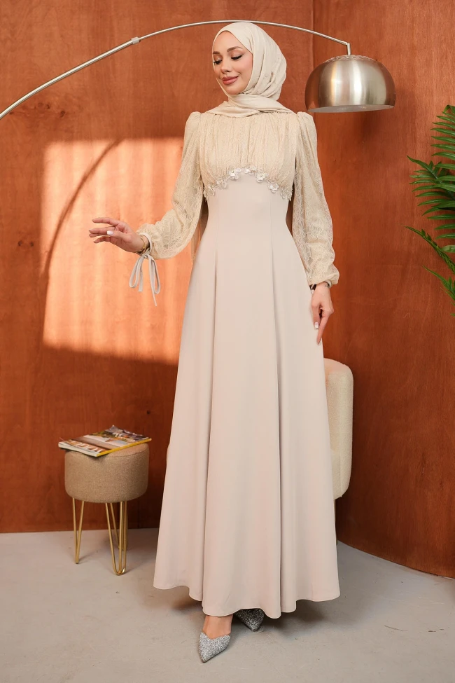 * Kumaş Türü : Premium Krep ve Dantel Kumaş