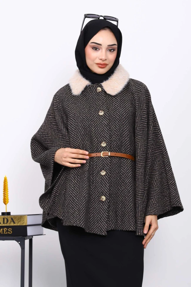 İndigo Yaka Kürklü Kemerli Panço Pembe Yaka Kürklü Kemerli Panço Siyah Yaka Kürklü Kemerli Panço Bordo Yaka Kürklü Kemerli Panço