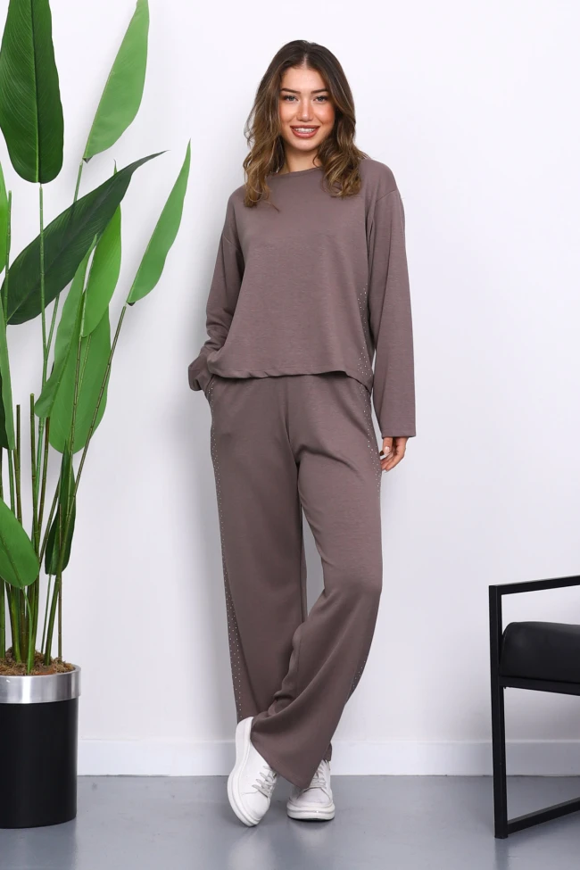 * Ürün Detay : Ürünümüz Modal kumaştan üretilmiştir. Sweat ile Pantolon ikili takım şeklindedir. Pantolon bel kısmı lastikli ve taş detayları yer almaktadır. Cep detaylıdır.