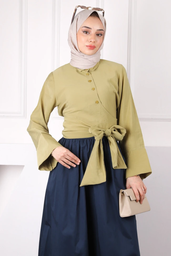 * Ürün Detay : Ürünümüz Pamuklu Modal Keten Kumaştan Üretilmiştir. Modelimiz ön kısmı düğmeli olup, yan kısma doğru bağlama detay yer almaktadır.