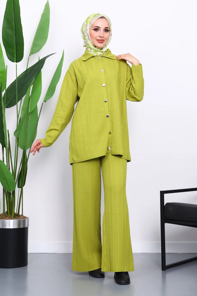 Saks Mavi Gömlek Yaka Düğmeli Pantolonlu Triko Takım Siyah Gömlek Yaka Düğmeli Pantolonlu Triko Takım Bej Gömlek Yaka Düğmeli Pantolonlu Triko Takım Füme Gömlek Yaka Düğmeli Pantolonlu Triko Takım Krem Gömlek Yaka Düğmeli Pantolonlu Triko Takım