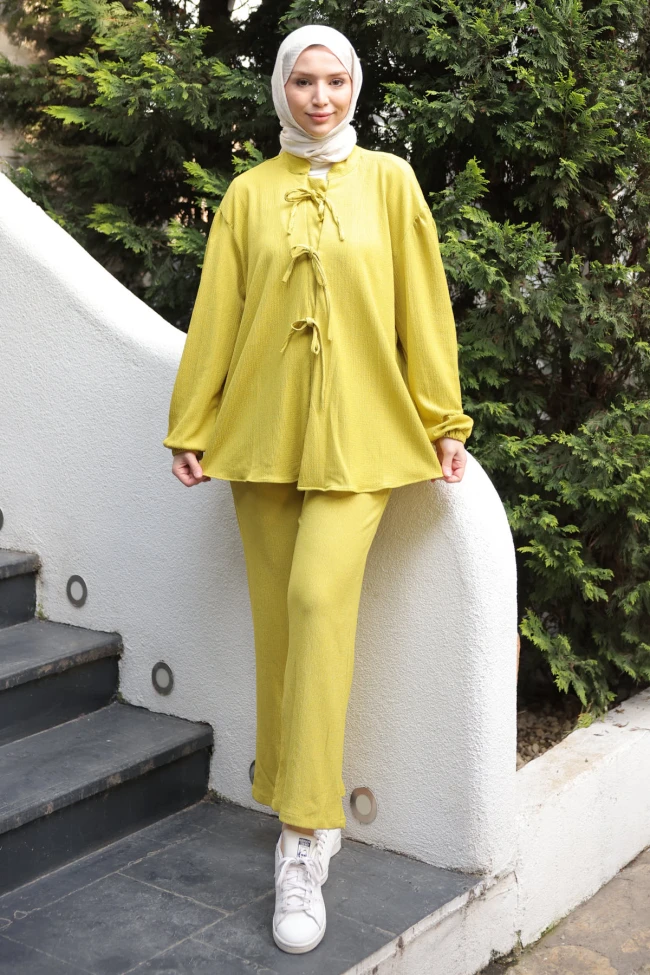 * Ürün Detay : Ürünümüz Bürümcük Kumaştan Üretilmiştir. Kimono ile Pantolon ikili takım şeklindedir. Kimono ön kısmı bağlamalıdır, pantolon bel kısmı lastiklidir.