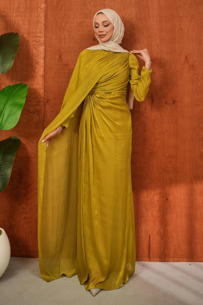 * Ürün Detay : Renklerin en güzel tonları abiye modelimiz ile buluşuyor. Özel günlerinizde zarif bir görünüm kazandıracak olan abiyemiz şifon kumaştan üretilmiştir. Pelerin detayının modern bir hava kattığı ürünümüzün sırtı fermuarlıdır.