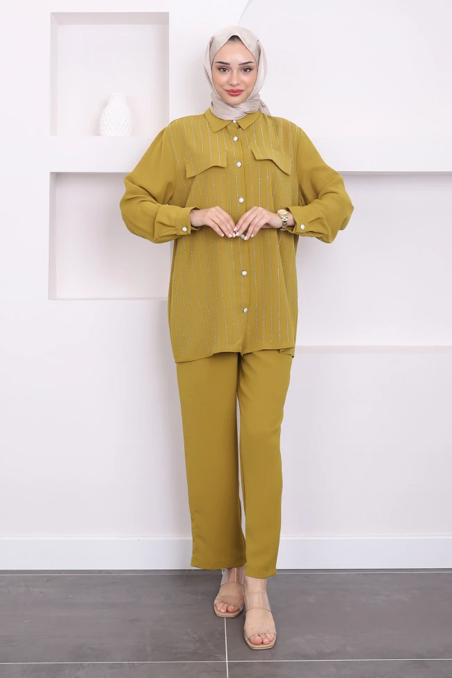 * Ürün Detay : Yeni sezona uygun ital krep kumaştan üretilmiştir önünde taş işlemeleri vardır pantolonun beli lastiklidir tunik cep kapaklıdır