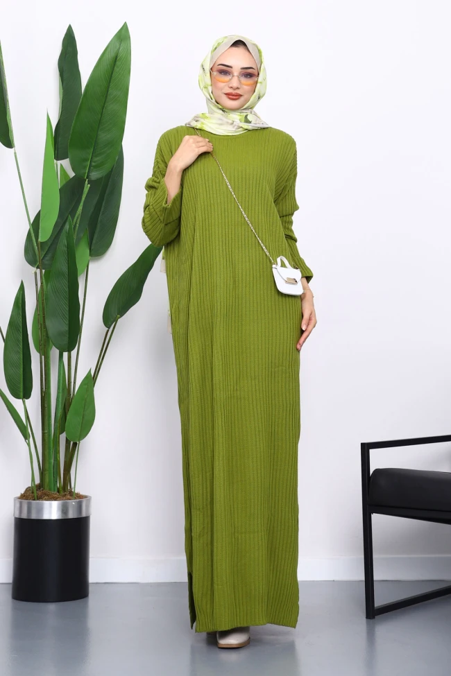 Kahve Bisiklet Yaka Yan Yırtmaçlı Triko Elbise Siyah Bisiklet Yaka Yan Yırtmaçlı Triko Elbise Bej Bisiklet Yaka Yan Yırtmaçlı Triko Elbise
