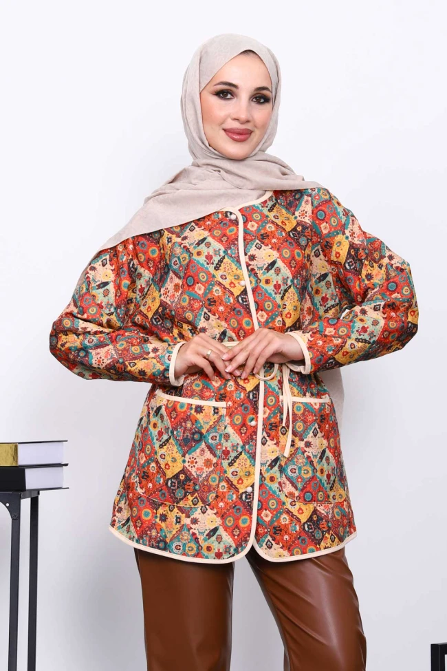 Lacivert Etnik Desenli Cepli Ceket Vizon Etnik Desenli Cepli Ceket Bordo Etnik Desenli Cepli Ceket Krem Etnik Desenli Cepli Ceket
