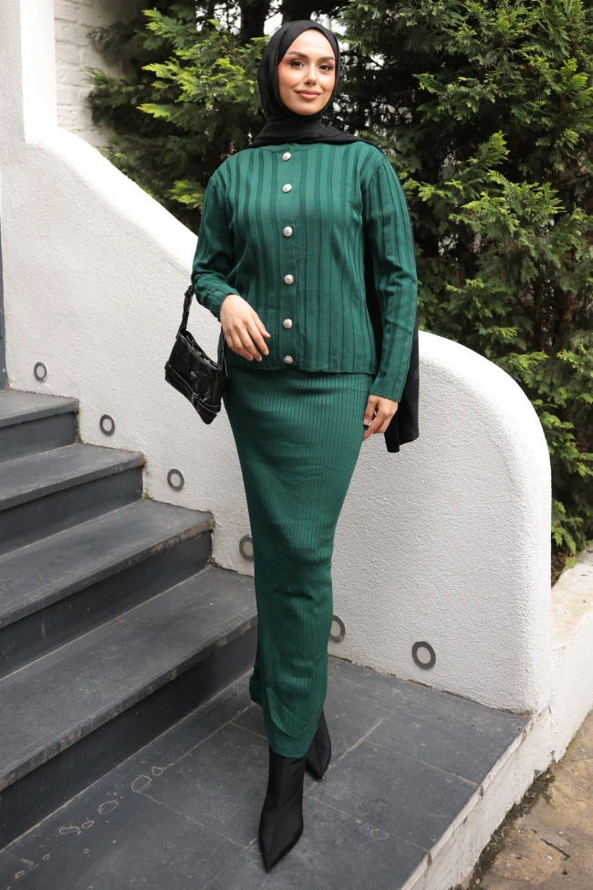 * Ürün Detay : Ürünümüz Triko Kumaştan Üretilmiştir. Hırka ile Elbise ikili takım şeklindedir. Hırka ön kısmı düğmelidir.