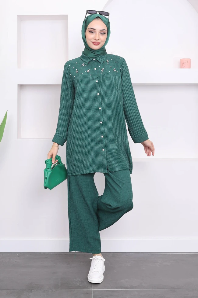 * Ürün Detay : Yeni sezona uygun Gofre kumaştan üretilmiştir. Pantolon- Tunik takım halindedir. Ön detaylıdır. Boydan düğmelidir. Pantolon beli lastiklidir.